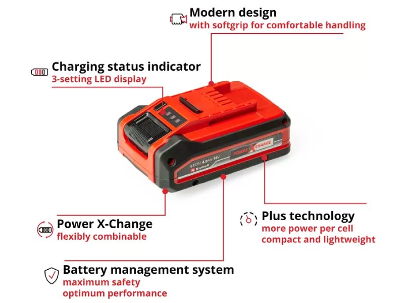 Wählen Sie den 'EINHELL 18V 4.0AH POWER-X-CHANGE PLUS' Akku und erleben Sie die nächste Stufe von Leistung und Effizienz!