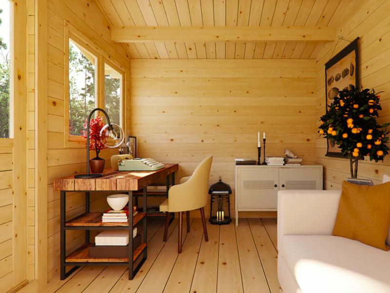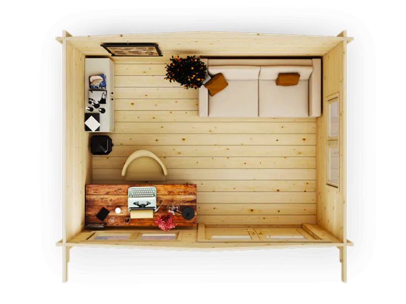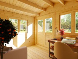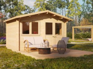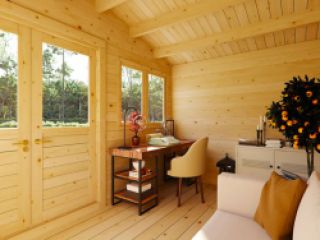 Gemütliches Haus "Marselan" ist aus nachhaltigem Holz gefertigt. Es ist perfekt geeignet, um ein ergonomisches Homeoffice, einen kleinen Fitnessraum zu Hause oder einen Spielbereich für Kinder zu schaffen. Ideal für kleinere Gärten mit begrenztem Platz. Das Häuschen besteht aus 44 mm dicken Holzbalken. Montageanleitung und alle Materialien für den Bau sind inbegriffen.
