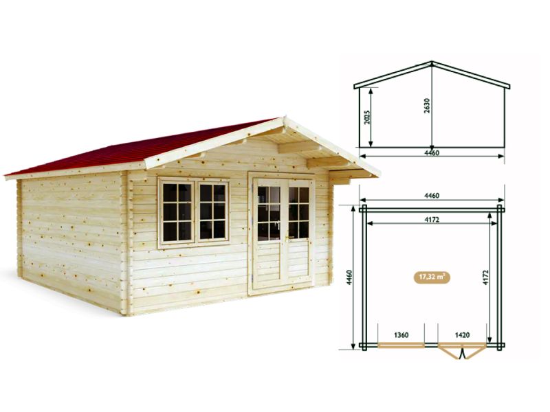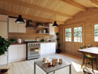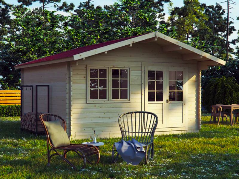 Sommerhaus für Wochenenden oder ein Garten-Gästehaus - das Holzgartenhaus "Merlot" kann beides sein. Hergestellt aus 44 mm starken Holzbalken und umweltfreundlichen Materialien, ist es einfach zu montieren. Montageanleitung und alle Baumaterialien sind im Lieferumfang enthalten.