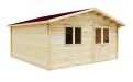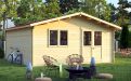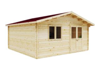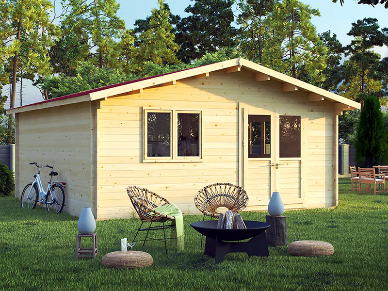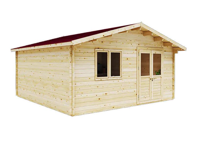 Standardmäßig wird dieses Holzhaus ohne Dachabdeckung geliefert.