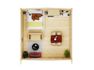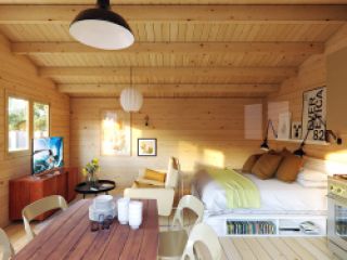 Unser größtes Haus, Nocera, kann Ihr Zuhause für den Sommer werden und bietet genügend Platz für vier Personen. Hergestellt aus 44 mm dicken Holzbalken und umweltfreundlichen Materialien,