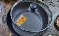 Dank des hohen Randes ideal für Gerichte mit Soße, zum Schmoren von Gemüse, Fleisch und sogar zum Backen von Fladenbrot. Stabil, schwer, gleichmäßige Wärmeverteilung und hervorragende Wärmespeicherung.