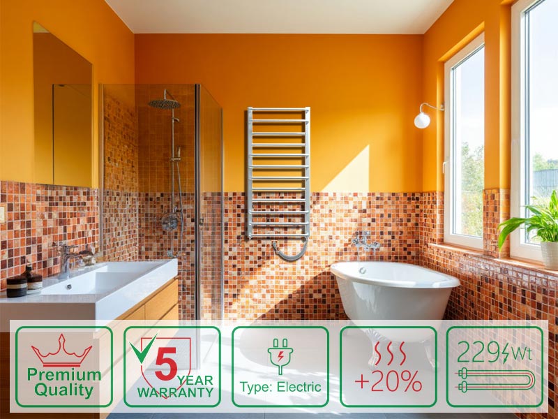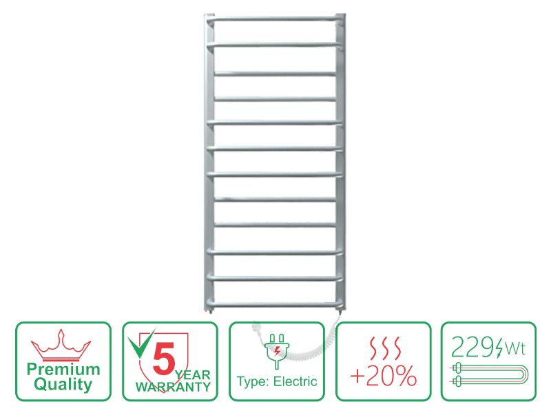 Elektrischer Handtuchheizkörper ALFA W-ED12/55 — eine traditionelle Lösung, die nicht von der Wasserversorgung abhängt. Das Gerät arbeitet vollständig autonom, benötigt keine Heizsaison und kann nahezu überall im Badezimmer installiert werden.