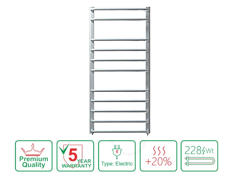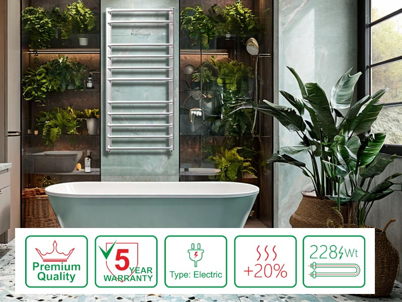 Elektrischer PREMIUM-Handtuchwärmer mit verlängerter 5-Jahres-Garantie.