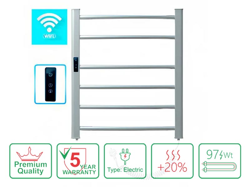 Elektrischer Handtuchwärmer der PREMIUM-Klasse mit verlängerter 5-Jahres-Garantie.
