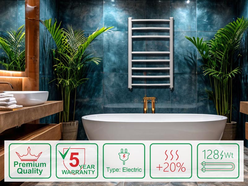 Elektrischer Handtuchtrockner der PREMIUM-Klasse mit erweiterter Garantie von 5 Jahren.