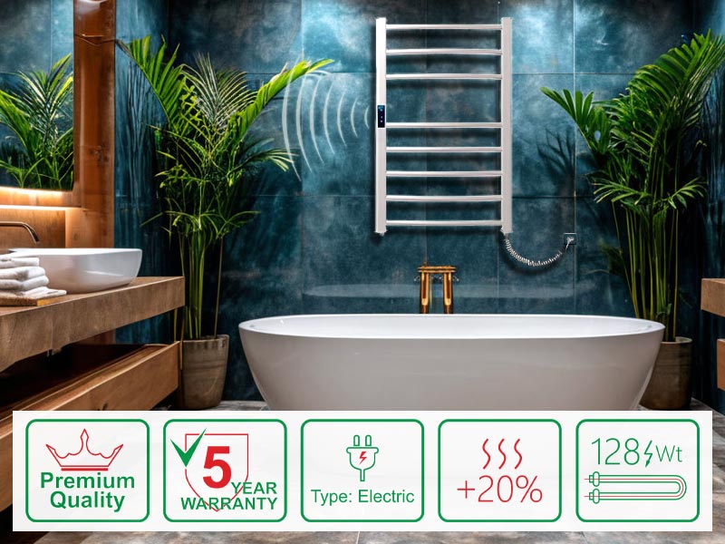 Elektrischer Handtuchwärmer der PREMIUM-Klasse mit verlängerter 5-Jahres-Garantie.