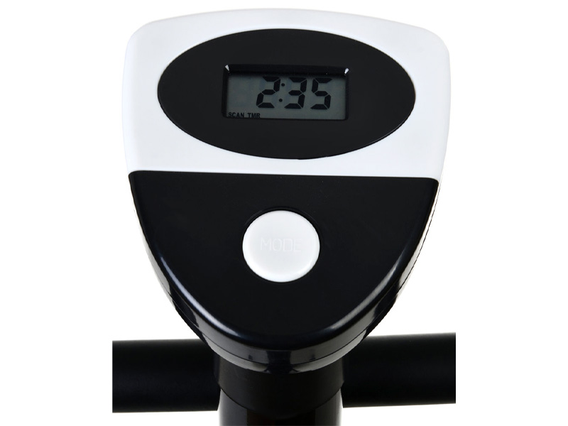 Ausgestattet mit einem Computer und einem LCD-Display, das Trainingszeit, zurückgelegte Strecke, Kalorienverbrauch und Geschwindigkeit anzeigt.