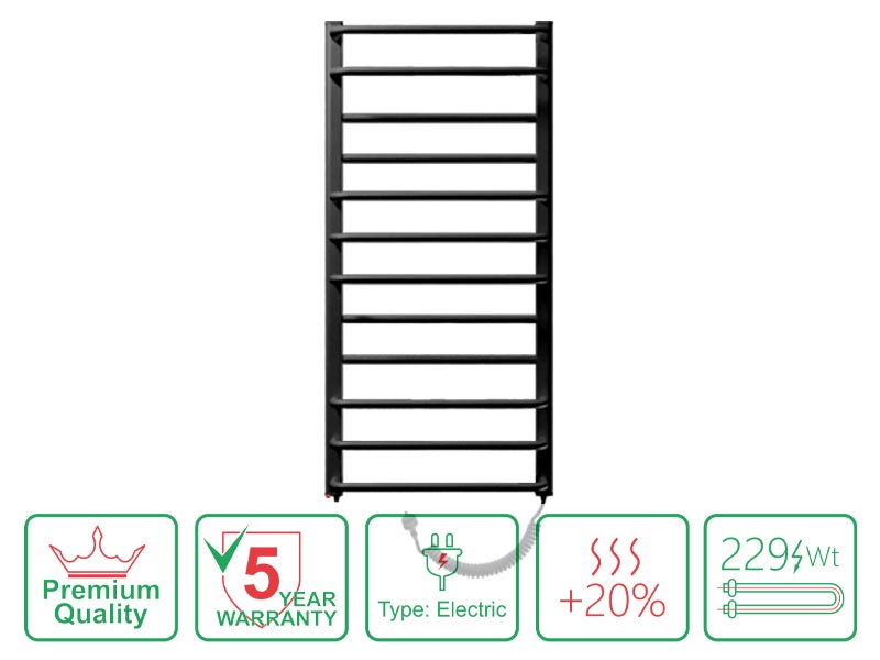Elektriline rätikuivati ALFA B-ED12/55 — traditsiooniline lahendus, mis ei sõltu veevarustusest. Seade töötab täielikult autonoomselt, ei vaja kütteperioodi ning seda saab paigaldada peaaegu igasse vannitoa kohta.