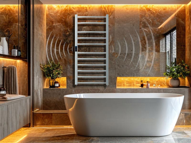 Kaasaegne puuteekraaniga käterätikuivati Wi-Fi juhtimise ja nutikodu toega. Juhtige vannitoa mugavust otse telefonist või tahvelarvutist.