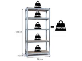 Suur kandevõime – 5 paksust MDF-ist riiulit taluvad kuni 175 kg igaüks (kogukoormus 875 kg).