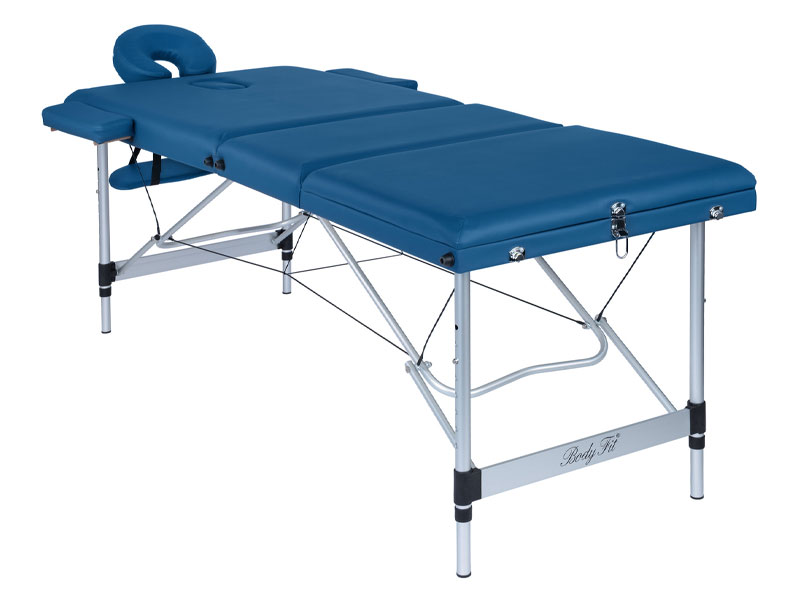 3 SEKCIJŲ SULANKSTOMAS IR NEŠIOJAMAS MASAŽO STALAS XXL, ALIUMINIS (SPALVA: MĖLYNA)