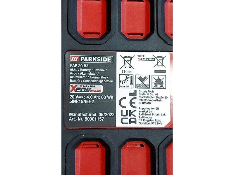 Galingas ličio jonų akumuliatorius 20 V (4 Ah)Elementų balansavimas užtikrina ilgesnį akumuliatoriaus veikimo laiką ir pagerintą akumuliatoriaus patikimumą.Suderinamas su visais Parkside X 20 Volt Team serijos įrankiais.Tinkamas 20 voltų X serijos įkrovikliui.