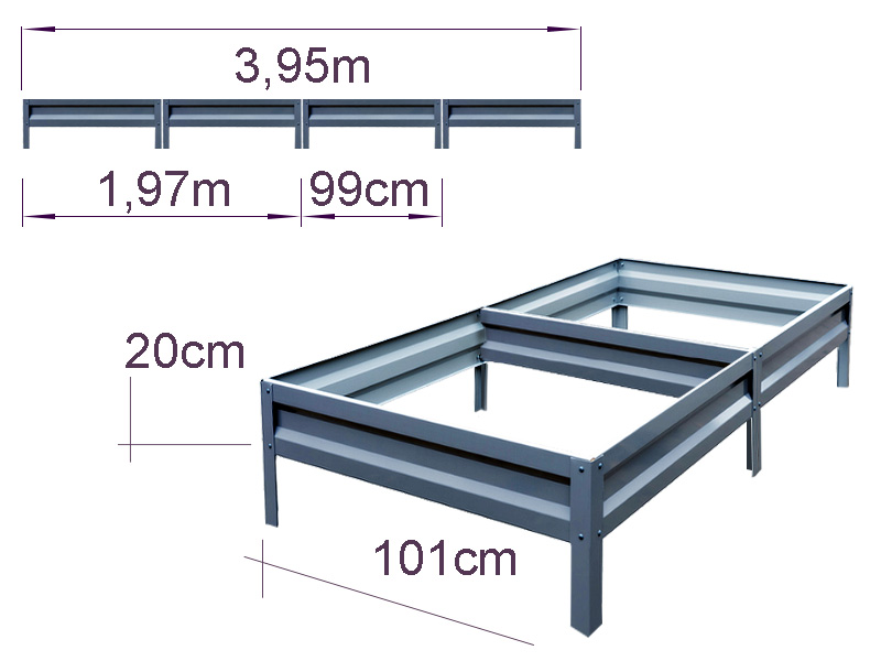 Cinkuota metalinė pakelta lysvė — patvarus sprendimas tvarkingiems aukštoms dobilų ar gėlių lysvėms suformuoti sode arba šiltnamyje. Pagaminta iš cinkuoto metalo, atspari rūdžiui ir išoriniams veiksniams. Unikali gamybos technologija užtikrina tarnavimo laiką ilgiau nei 10 metų.