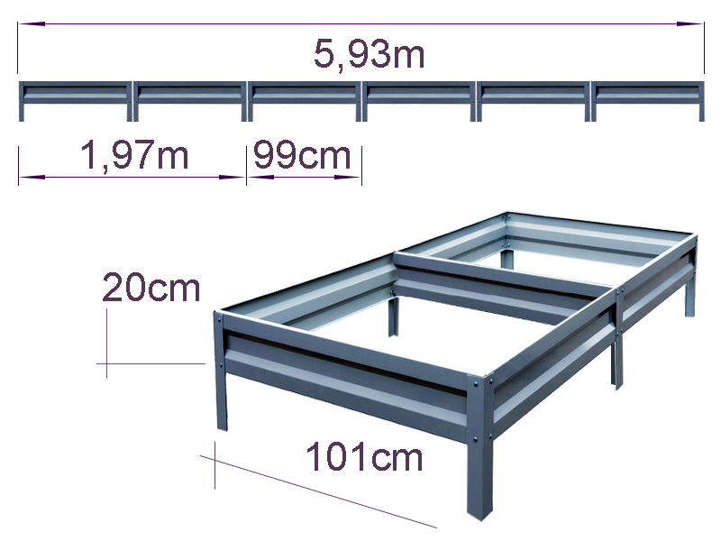 Cinkuota metalinė pakelta lysvė — patvarus sprendimas tvarkingiems aukštoms dobilų ar gėlių lysvėms suformuoti sode arba šiltnamyje. Pagaminta iš cinkuoto metalo, atspari rūdžiui ir išoriniams veiksniams. Unikali gamybos technologija užtikrina tarnavimo laiką ilgiau nei 10 metų.