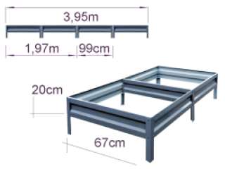 Cinkuota metalinė pakelta lysvė arba šiltnamio jungikliams 20 x 67 x 395 cm