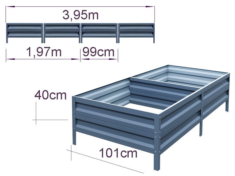 Cinkuota metalinė pakelta lysvė jūsų sodui ir šiltnamiui 40 x 101 x 395 cm – patvarumas, tvirtumas ir stilius