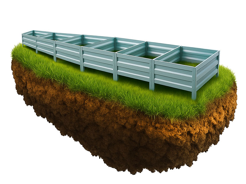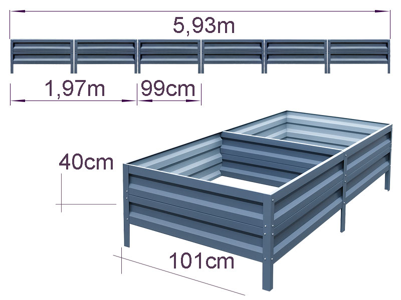 Cinkuota metalinė pakelta lysvė pagaminta iš patvario cinkuoto metalo ir skirtas tvarkingoms sodo dobilėms ir pasodinimams suformuoti. Sustiprintos plokštės ir patikima jungčių sistema užtikrina stabilų geometriją ir konstrukcijos tvirtumą daugelį metų.
