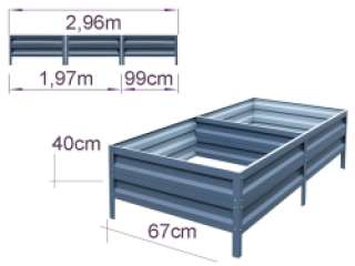 Cinkuota metalinė pakelta lysvė pagaminta iš patvario cinkuoto metalo ir skirtas tvarkingoms sodo dobilėms ir pasodinimams suformuoti. Sustiprintos plokštės ir patikima jungčių sistema užtikrina stabilų geometriją ir konstrukcijos tvirtumą daugelį metų.