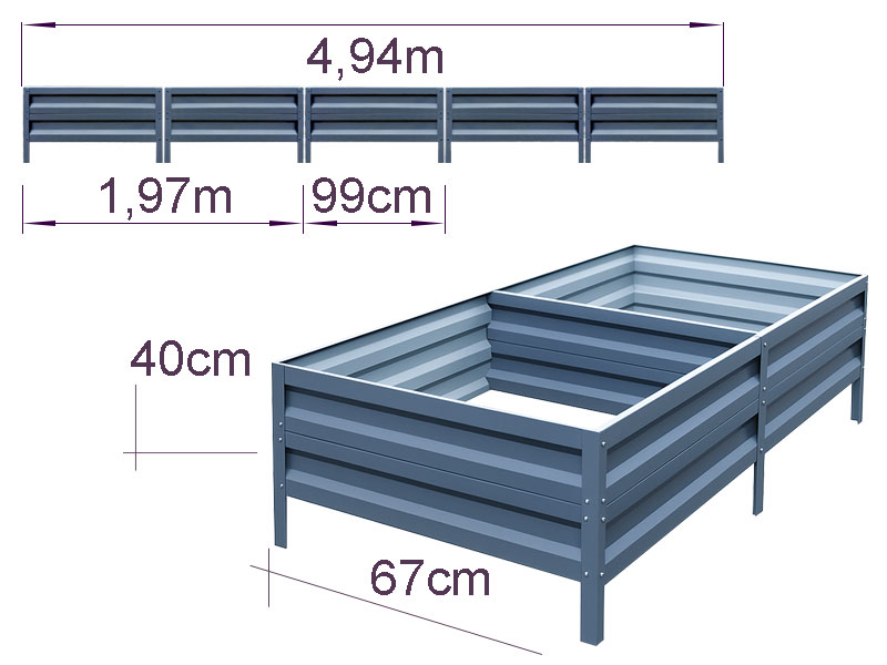 Cinkuota metalinė pakelta lysvė pagaminta iš patvario cinkuoto metalo ir skirtas tvarkingoms sodo dobilėms ir pasodinimams suformuoti. Sustiprintos plokštės ir patikima jungčių sistema užtikrina stabilų geometriją ir konstrukcijos tvirtumą daugelį metų.