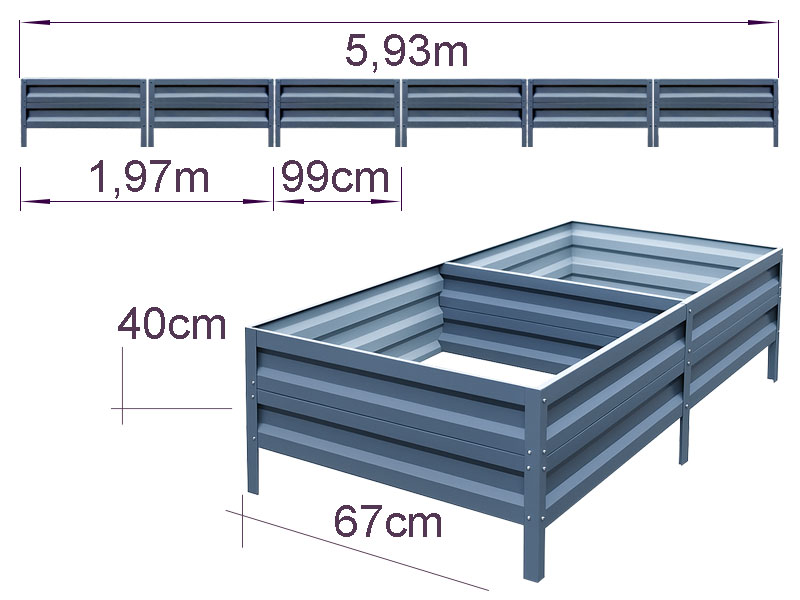 Cinkuota metalinė pakelta lysvė jūsų sodui ir šiltnamiui 40 x 67 x 593 cm – patvarumas, tvirtumas ir stilius
