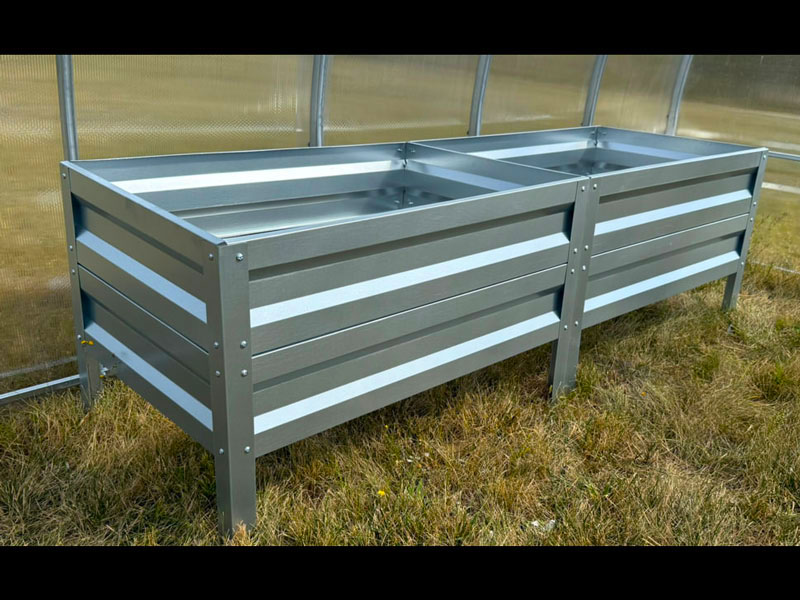 • Darbo patogumas – aukšti bortai užtikrina patogų priėjimą prie augalų be nugaros ir kaklo apkrovos.
