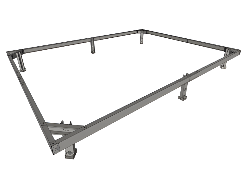 Pamatų išmatavimus galima reguliuoti reikiamu pločiu ir ilgiu pritaikant juos konkrečiam šiltnamio modeliui.