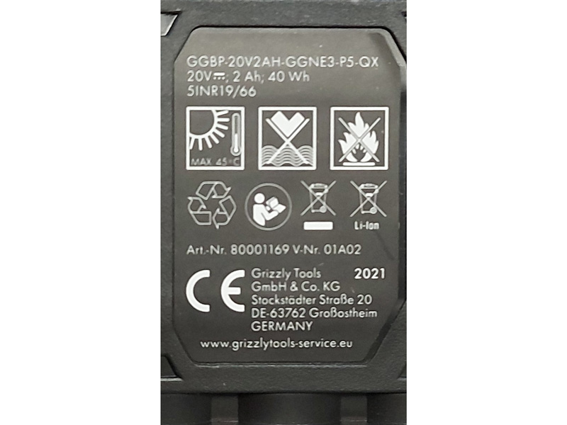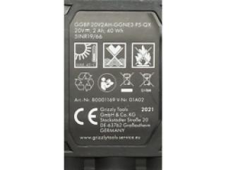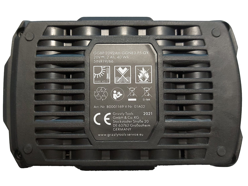 Grizzly Tools atsarginis akumuliatorius ypač patikimas ir galingas, dėka jo ličio jonų pagrindo. Keičiamo akumuliatoriaus, kuris suderinamas su visomis Grizzly Tools 20 voltų serijomis, talpa yra 2,0 Ah / 40 Wh, ir jis turi didesnį energijos tankį nei kitų tipų akumuliatoriai.
