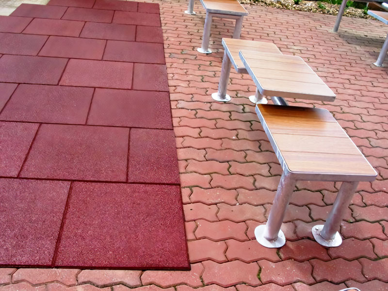 Pažeidimų prevencija:Be vargo galima pakeisti pažeistą guminę plytelę nauja, nereikia išardyti visą plotą.