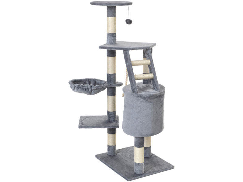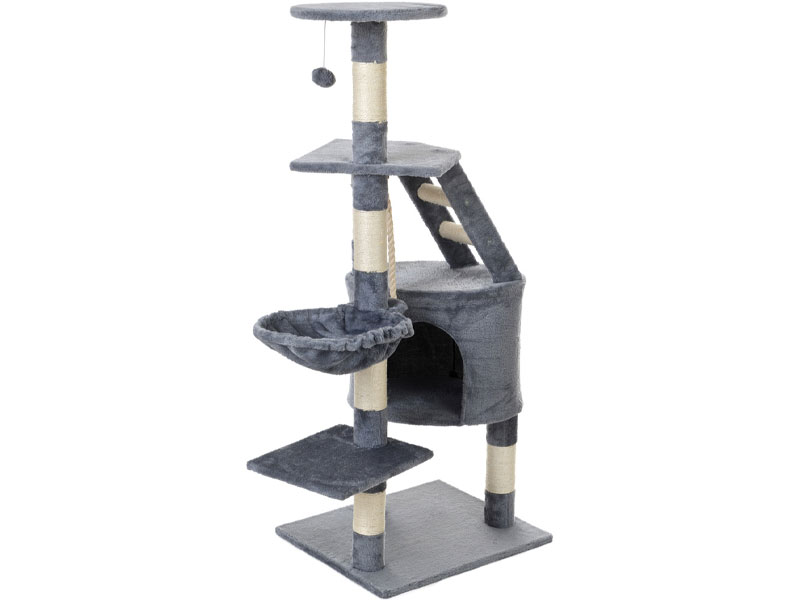 Katinų namelis – draskyklė, 5 lygmenys, aukštis= 1,2 m (spalva: pilka)