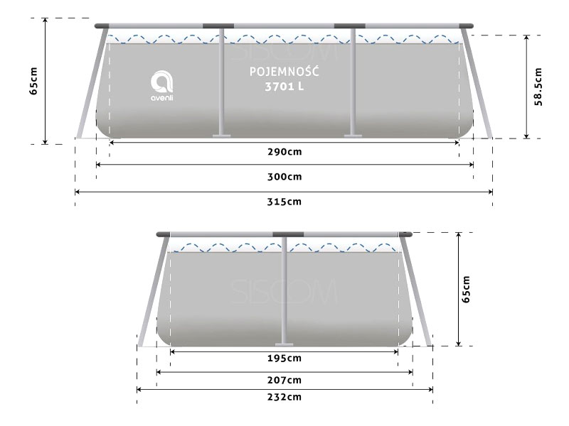 KARKASINIS BASEINAS SODUI AVENLI 300×207×65 CM – KOMPLEKTAS 15 VIENAME