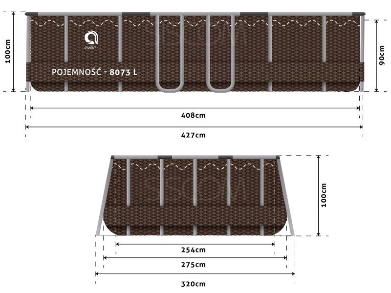 Mėgaukitės poilsio atmosfera neišėję iš namų! Platus karkasinis baseinas Avenli 427x275x100 cm yra idealiai tinkamas visai šeimai. Pailsėkite po darbo dienos arba suteikite vaikams neužmirštamas vasaros atostogas savo kieme.
