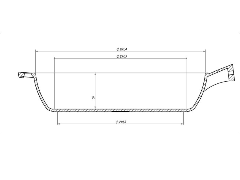 Dydis: skersmuo 28 cm, sienelių aukštis 6 cmSvoris: 3,8 kgMedžiaga: nelakuotas ketusRankena: mediena (alkšnis), nuimamaDangtelis: atsparus karščiui stiklas su bakelito rankena