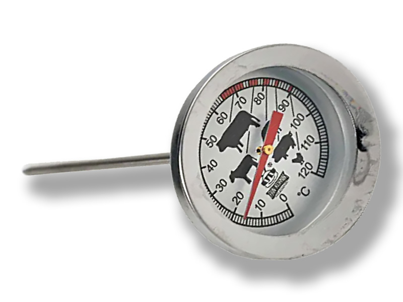 Idealus termometras rūkyklai, gri ar orkaitės? Klasikinis termometras iš rūgščių atsparaus nerūdijančio plieno yra būtent tai, ko jums reikia! Atlaiko temperatūrą iki 250°C ir užtikrina tikslų matavimą. Dėka patvarios konstrukcijos iš aukštos kokybės medžiagų, termometrą galima palikti orkaitėje visą kepties laiką. Skalės skersmuo 5,5 cm leidžia lengvai nuskaityti rodmenis. Šis termometras idealiai tinka naudoti rūkyklėje, gri, orkaitėje ir krosnyje. Be to, jis yra visiškai saugus kontaktui su maisto produktais. Tobulinkite savo kulinarinius įgūdžius su patikimu termometru!