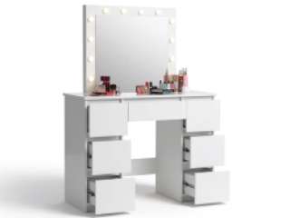 Kosmetinis staliukas su LED veidrodžiu ir stalčiais