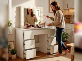 Kosmetinis staliukas su LED veidrodžiu — komfortas, stilius ir tvarka kiekvieną dieną — idealus makiažo staliukas