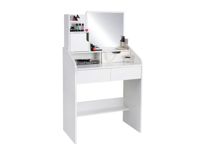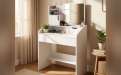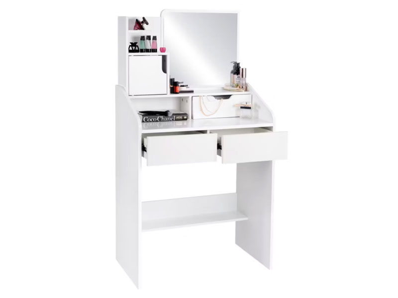 Šis kosmetinis staliukas su veidrodžiu ir stalčiais bus puikus pasirinkimas miegamajam, drabužinei ar kosmetikos kampeliui.