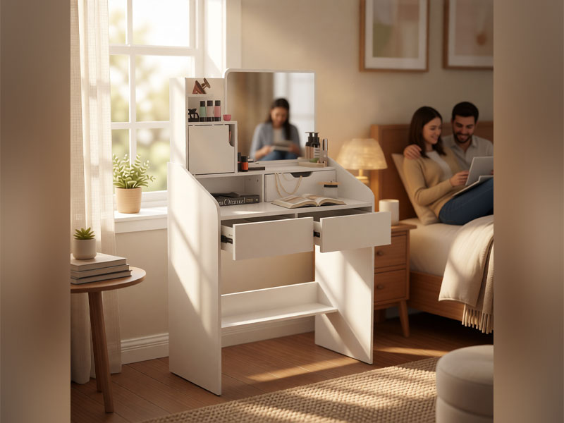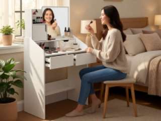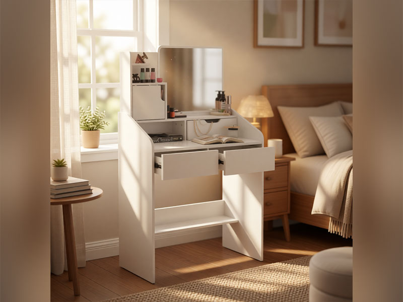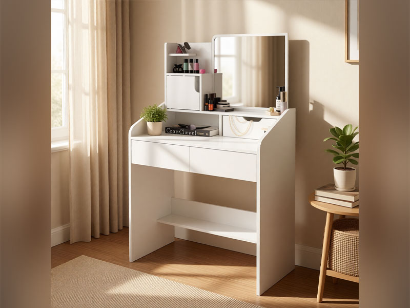 Kosmetinis staliukas su veidrodžiu — tai stilingas ir praktiškas sprendimas erdvei organizuoti,