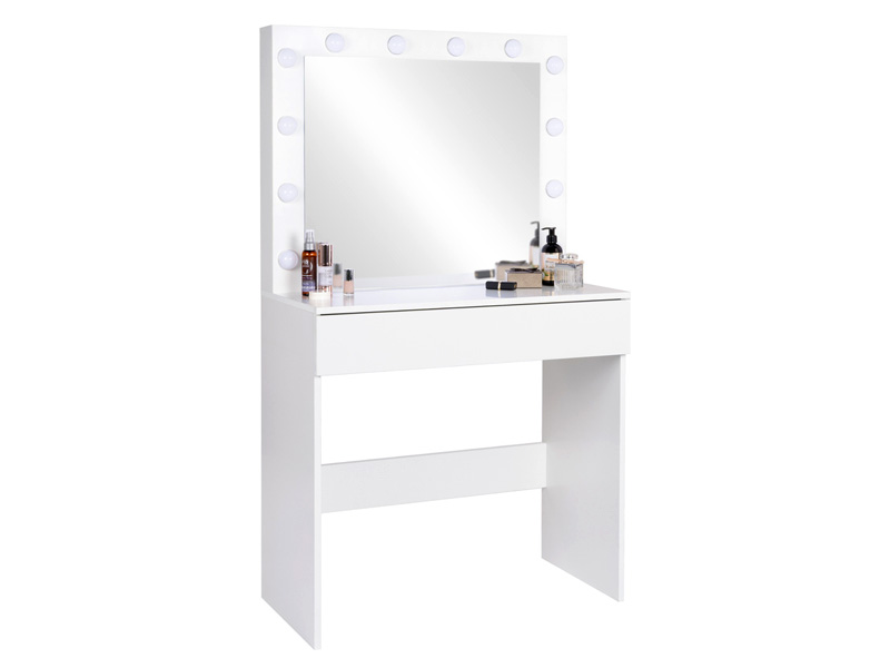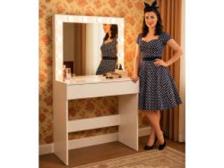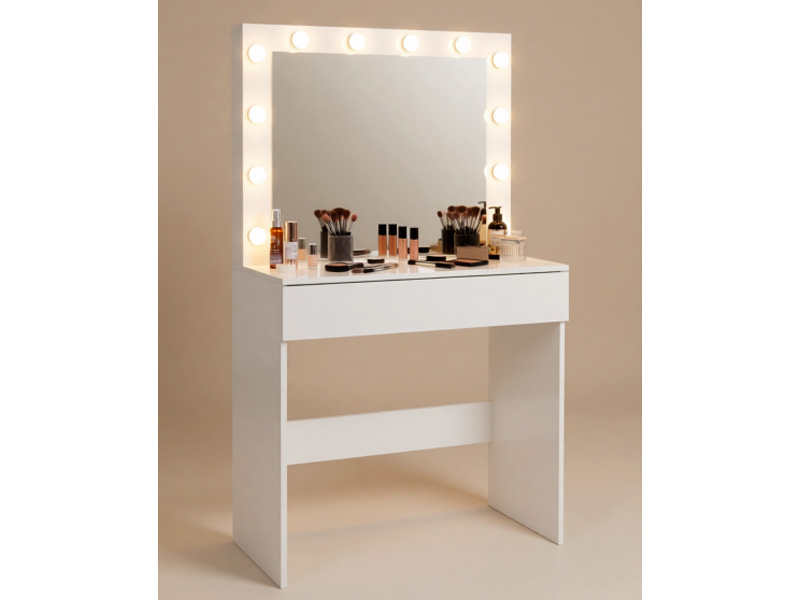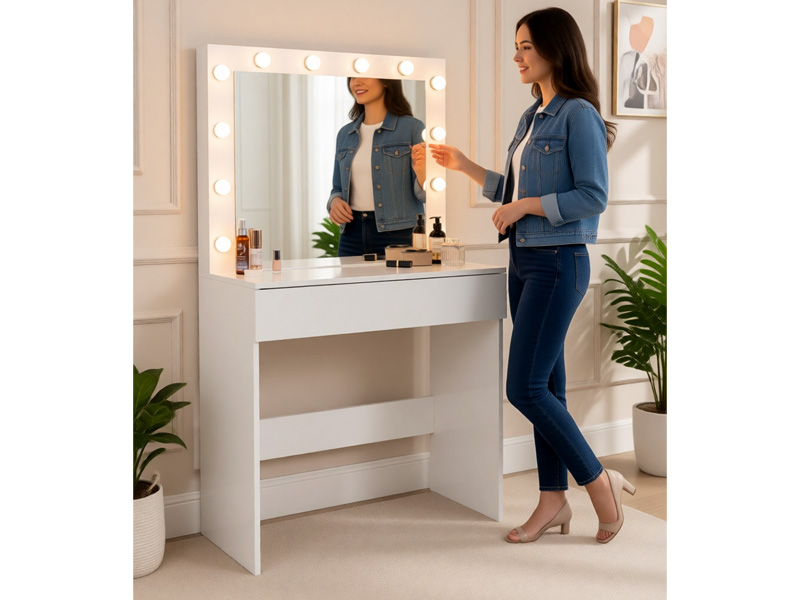 Kosmetiniai tualetiniai staliukai moterims – tai asmeninė poilsio ir grožio erdvė, kurioje patogu atlikti makiažą ar susitvarkyti šukuoseną. Preciziškam makiažui būtinas geras apšvietimas, todėl veidrodis aprūpintas praktišku LED apšvietimu.