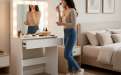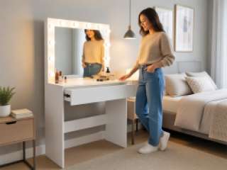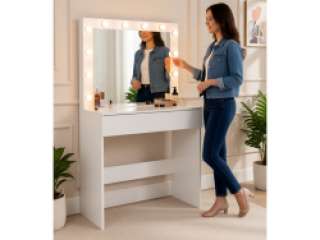 Kosmetinis tualetinis staliukas su LED veidrodžiu – tai elegantiškas ir funkcionalus baldas, talpinantis didelį kiekį kosmetikos ir užtikrinantis maksimalų komfortą kasdieniam makiažui.