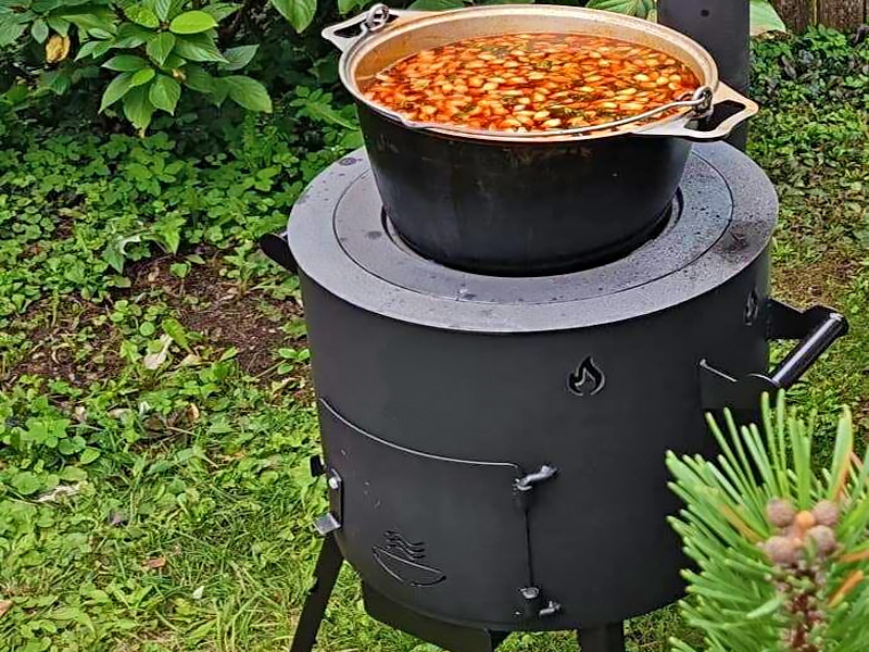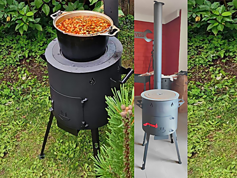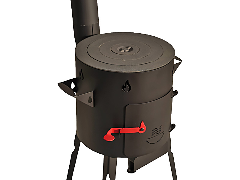 Krosnelė katilui 6L su dūmtraukio vamzdžiu ir ketaus liejinio krosnelės ratu