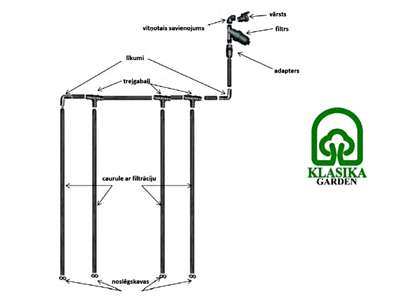 Laistymo sistema KLASIKA DROP skirta paleisti iš stovinčios vandens talpyklos - statinės (be slėgio).