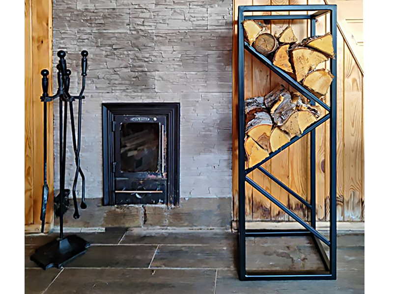 Elegantiškas malkų laikiklis puikiai tinka jūsų patalpos stilingam laikymui ir dekoravimui.