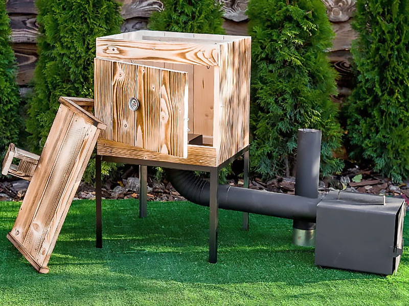 Ugniavietė pagaminta iš storalenčio plieno, kas garantuoja jos patvarumą ir ilgaamžiškumą. Pagrindinė rūkyklos medžiaga – Skandinavijos eglė, kuri ne tik patvari, bet ir suteikia įrenginiui elegantišką bei estetišką išvaizdą.