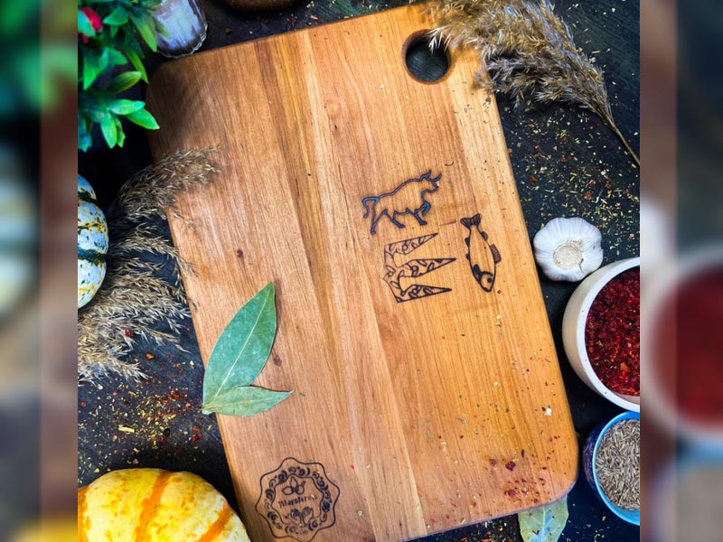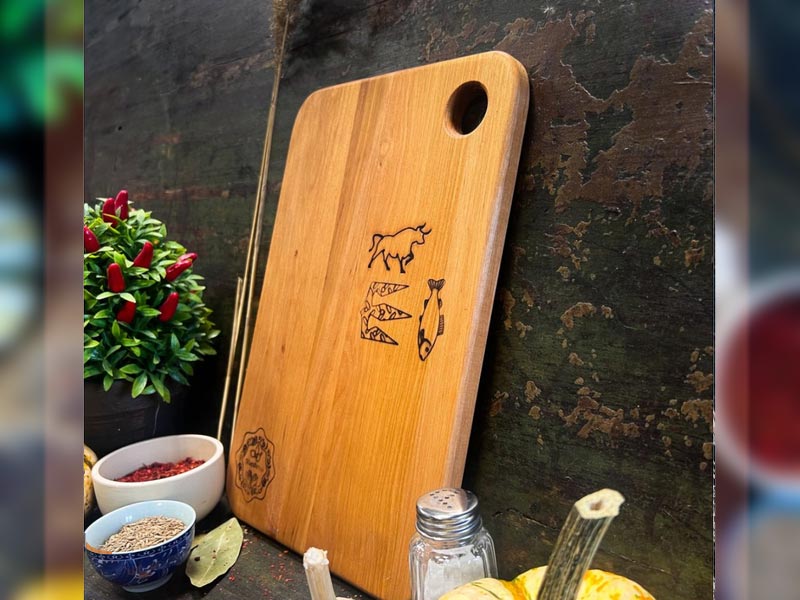Virtuvės pjaustymo lentelė Maysternya 20×30×1,5 cm iš beržo — mėsai ir žuviai
