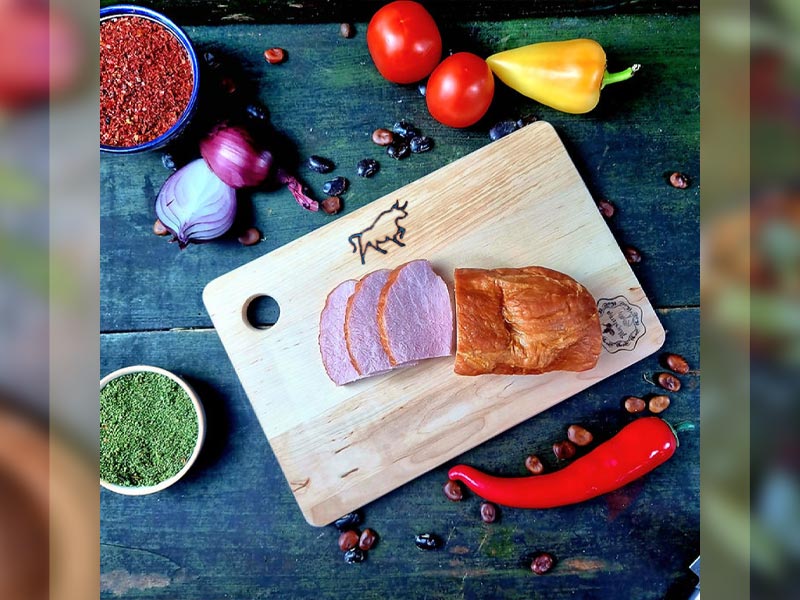 Beržo medienos pjaustymo lentelė Maysternya yra idealiai tinkama mėsos pjaustymui. Glotnus ir patvarus paviršius be skiedrų užtikrina komfortą ir saugumą naudojant. Storis 1,5 cm padaro lentelę stabilią ir patogią laikyti rankoje. Specialus kiaulytės formos raštas rodo jos panaudojimą — mėsai.