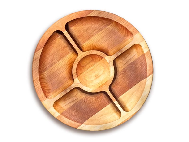 Aptarnavimo apvali medinė lentelė Ø35 cm, 5 skyriai, dvipusė