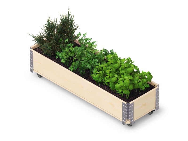 Lengvas prieskoninių augalų ir gėlių auginimas ant balkonų ir terasų. HerbsBox yra mūsų klasikinės Gardenbox linijos mažesnė versija, kuri yra ant ratų, todėl ją galima pastatyti ant balkono kaip kompaktišką ir mobilią pakeltą lysvę. Ji yra prieinama 3 dydžiuose ir 4 spalvose ir pagaminta iš atsakingai gautos Šiaurės šalių minkštosios medienos.