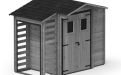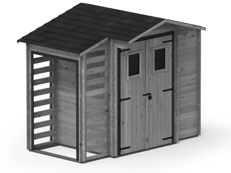 Techninė informacija:Medžiaga: Šiaurės eglėSpalva: pilka/impregn. 44.400044Vidinis plotas: 0.6 + 1.5 + 0.6 m²Sienelės storis: 19 mmStogas: 10 mm lentos arba OSBStogo dangos komplektas: įtrauktas (Ondulinas arba PVC)