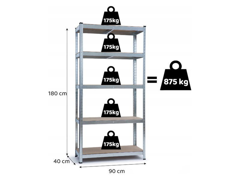 Metalinė lentyna 180x90x40 cm (875 kg)